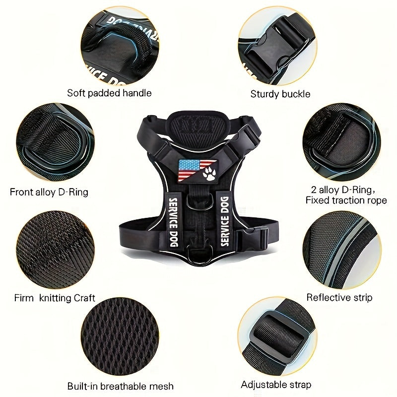 Service Dog Harness, Reflective Dog Vest Harness With 5 PCS Patches, Adjustable Soft Oxford Pet Harness, Inner Layer Mesh, Easy To Control For Small Medium Large Dogs With 59inch Traction Rope