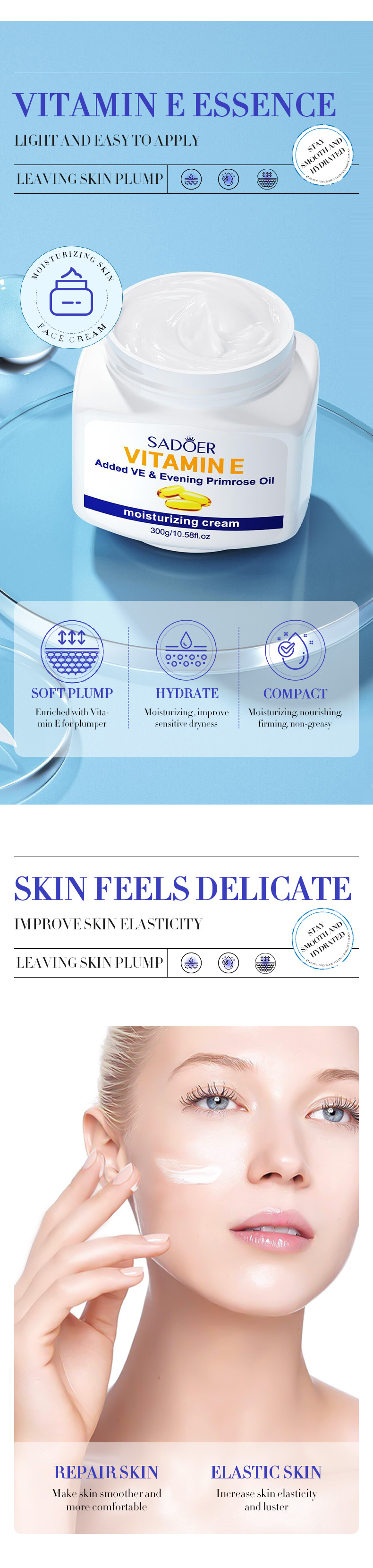 Vitamin E Face Cream Large Bottle 300g Daily Facial Repair Moisturizing Cream Skincare Moisturizer Safe for Sensitive Skin Care